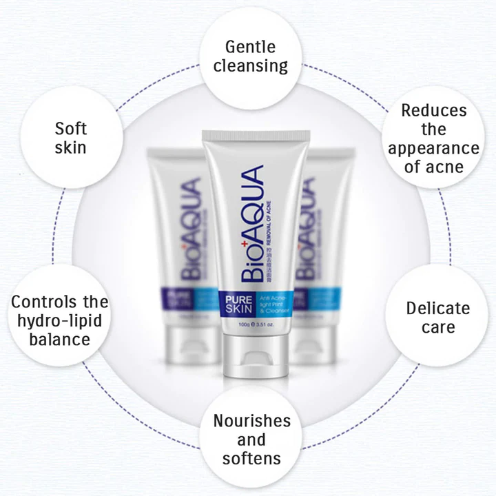 BIOAQUA Skin Care Acne Face Removal Cleanser Cream Spots Scar Blemish Mark 100gRid of acne, acne marks and repairing damage to the skin.Shrink pores, improve skin elasticity.Effective regulation, balanced facial oil…